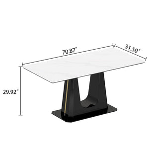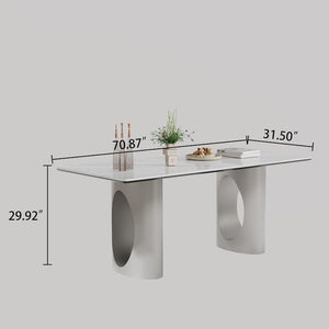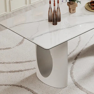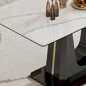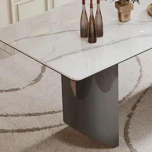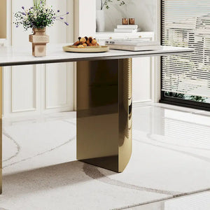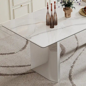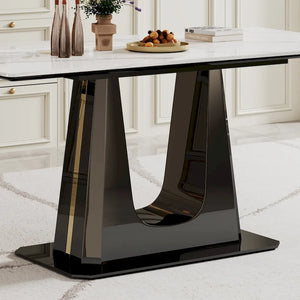 Dining Table with Sintered Stone Composite Glass Top and Stainless Steel Base