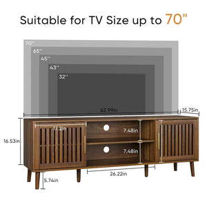 63 Inch TV Stand with Grille Door Cabinets and Adjustable Storage