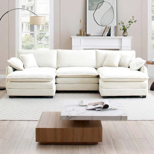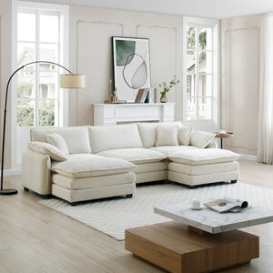 Beige Corduroy U-Shaped Modular Sectional Sofa with 2 Ottomans