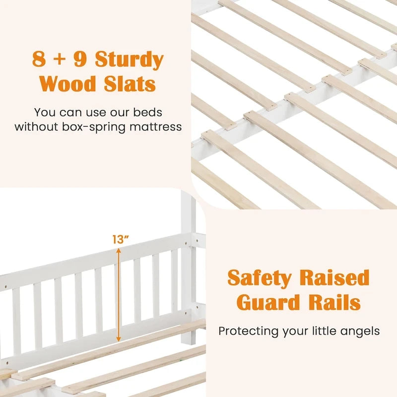 Wooden House Bed Twin to King with Safety Rails