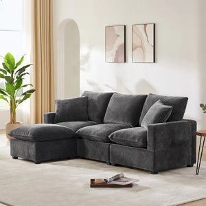 L-Shape Modular Chenille Sectional Sofa with Ottoman