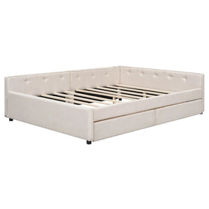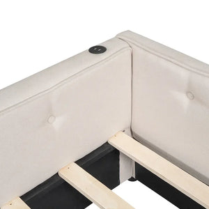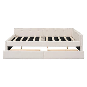 Linen L-Shaped Sofa Bed with USB Charging and 2 Storage Drawers Queen/Full